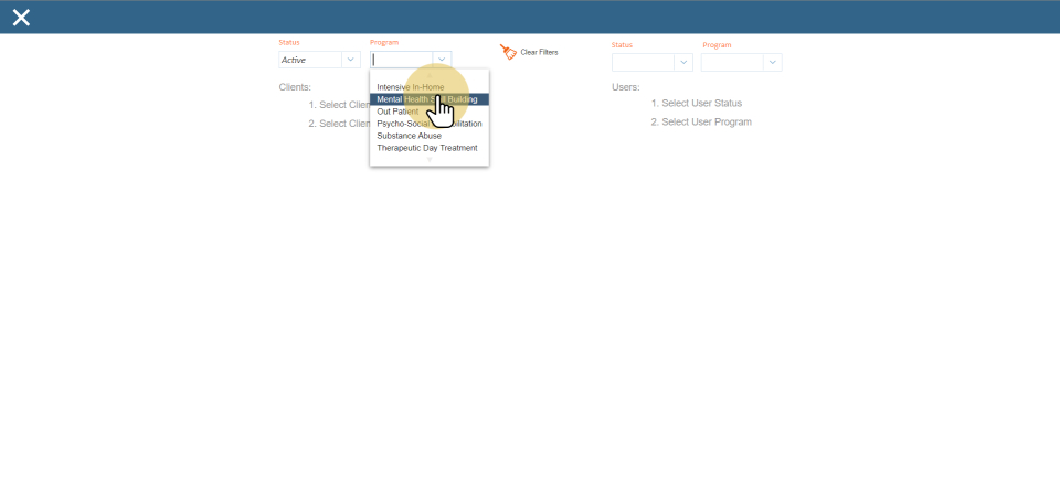 Clear filter to start over