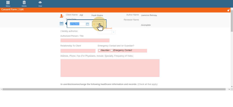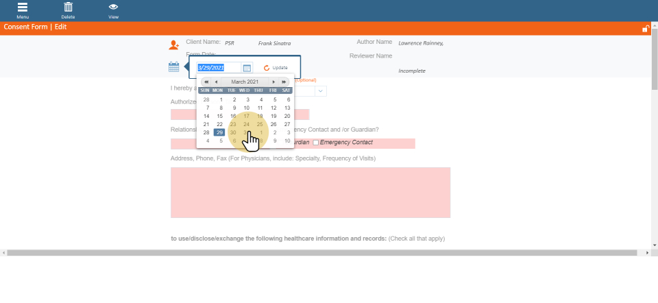 Choose date of form