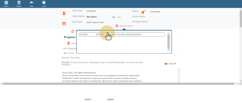7.3. Creating a group SAS note