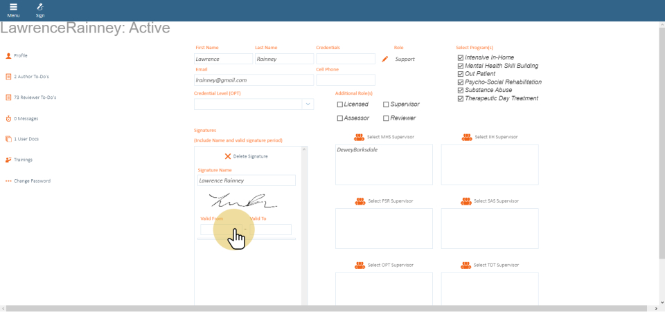 Valid dates are important. Based on the validation dates, the signature will appear on the form/note where the document falls in between the valid from and to date.