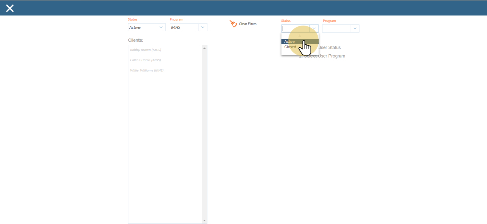 Clear filter to start over
