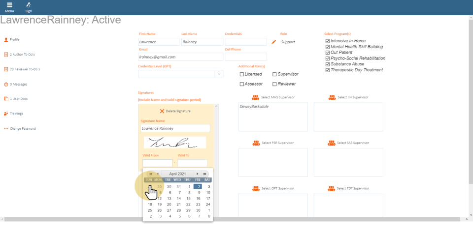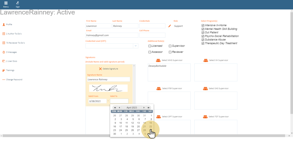 Valid dates are important. Based on the validation dates, the signature will appear on the form/note where the document falls in between the valid from and to date.
